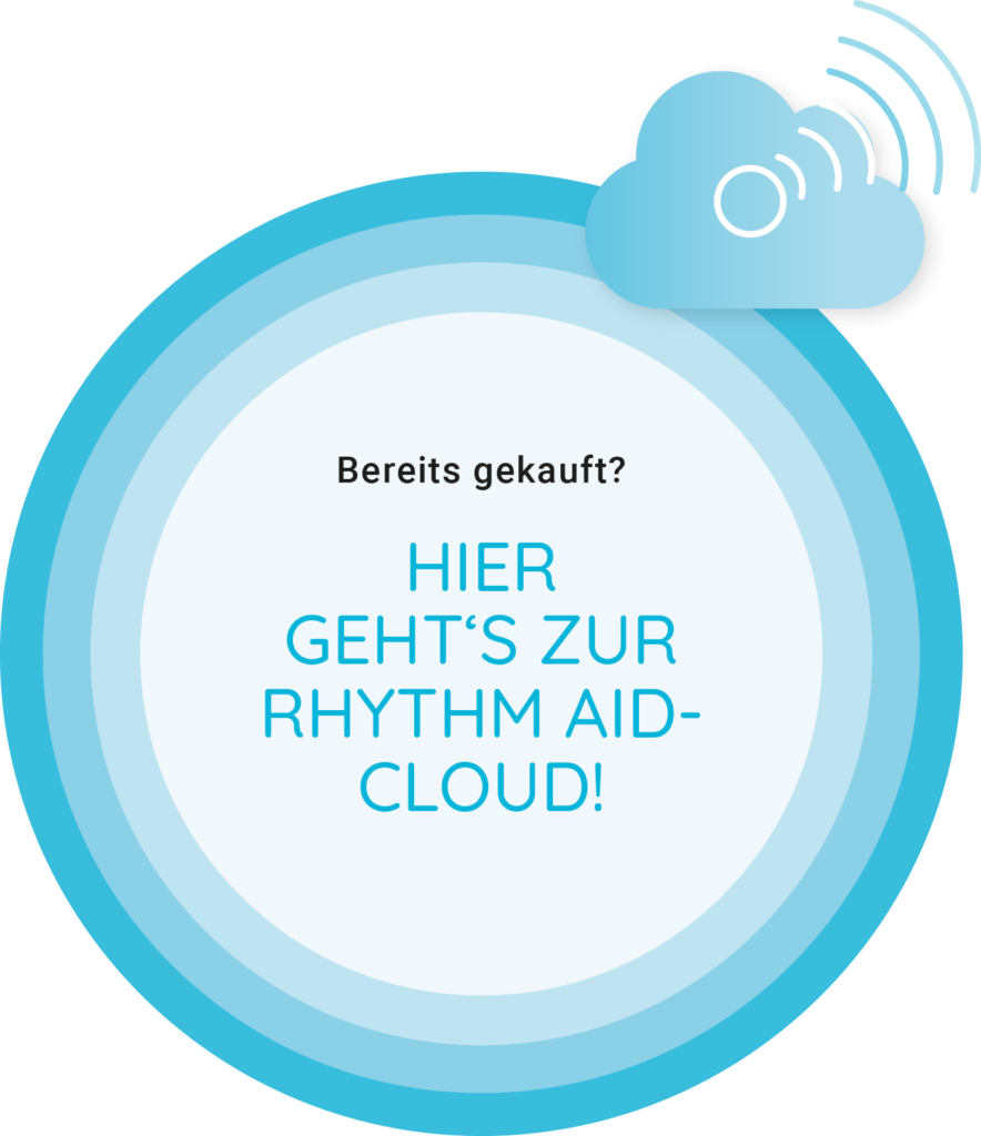 Während des Kaufvorgangs vergibst du dein persönliches Cloud-Passwort, das gemeinsam mit deiner E-Mail Adresse dein künftiger Schlüssel zum Cloud-Eingang sein wird. Zur Rhythm Aid-Cloud gelangst du immer über das “Klingende Cloud”-Symbol auf rhythm-aid.com – rechts oben im Menü oder ganz unten im Footer.